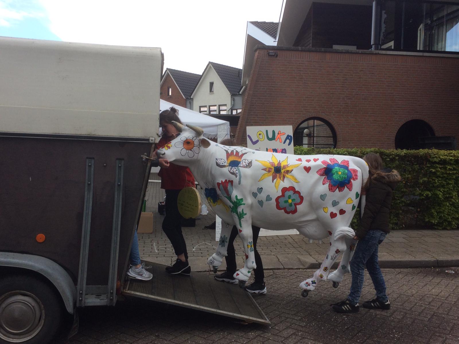Binnenkort een ouderavond om te overleggen hoe of wat en waar en nog even bijpraten., maar de afgelopen weken hebben we weer verschillende klussen gedaan, zoals ramenlappen, behang strippen en mappen vullen. Goed bezig geweest dames, top! Ook zijn de statiegeld potten bij de supermarkten weer geleegd, ook dat brengt geld in het laatje, daarnaast hebben we op koningsdag op 2 markten gestaan; in Warnsveld en in Laren, waar we ook weer een goed bedrag binnen hebben gehaald De koe is nog een beetje geverfd, vervolgens geveild en gaat nu definitief naar een eigenaar (zie de de foto daar gaat ze op stap).